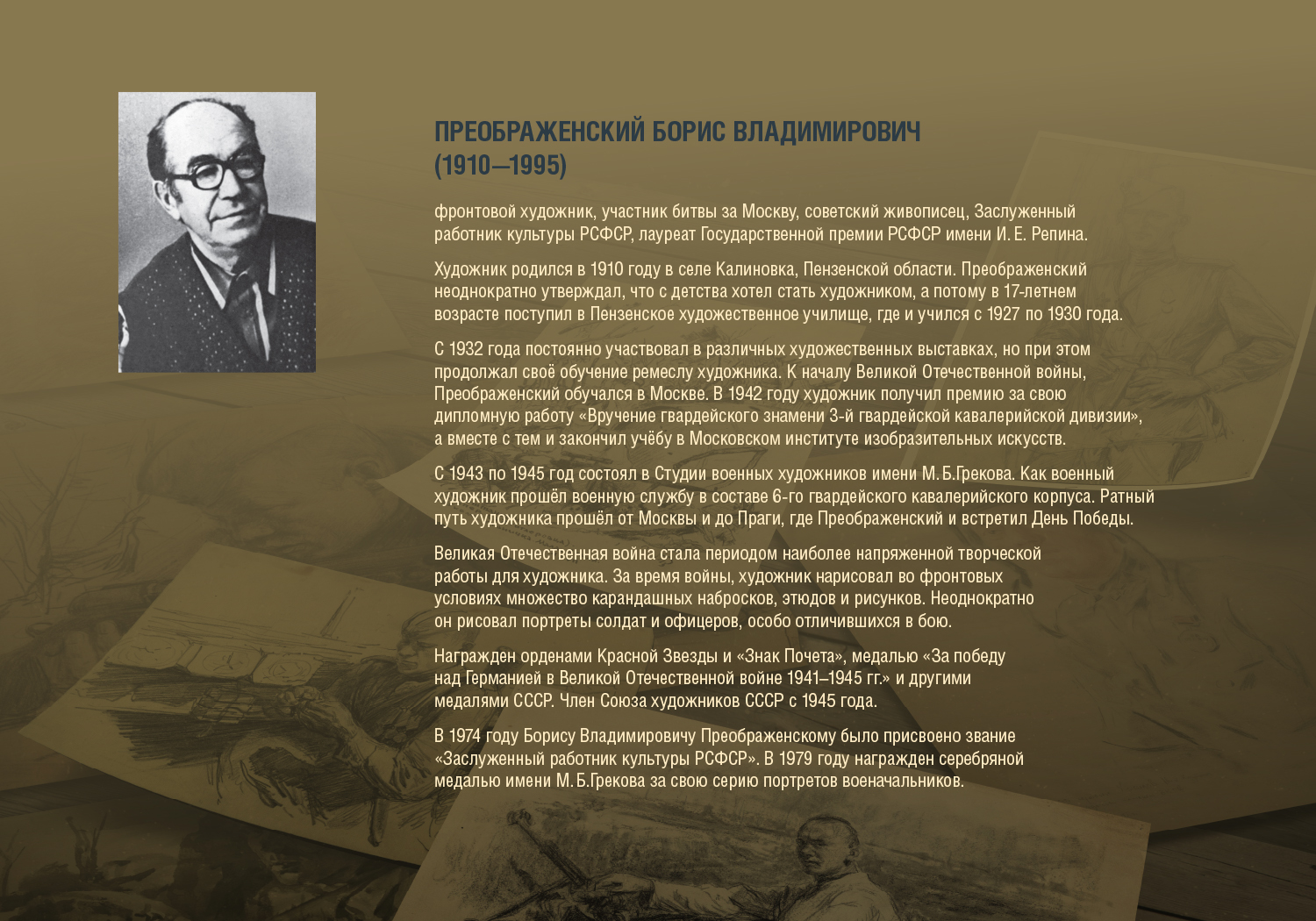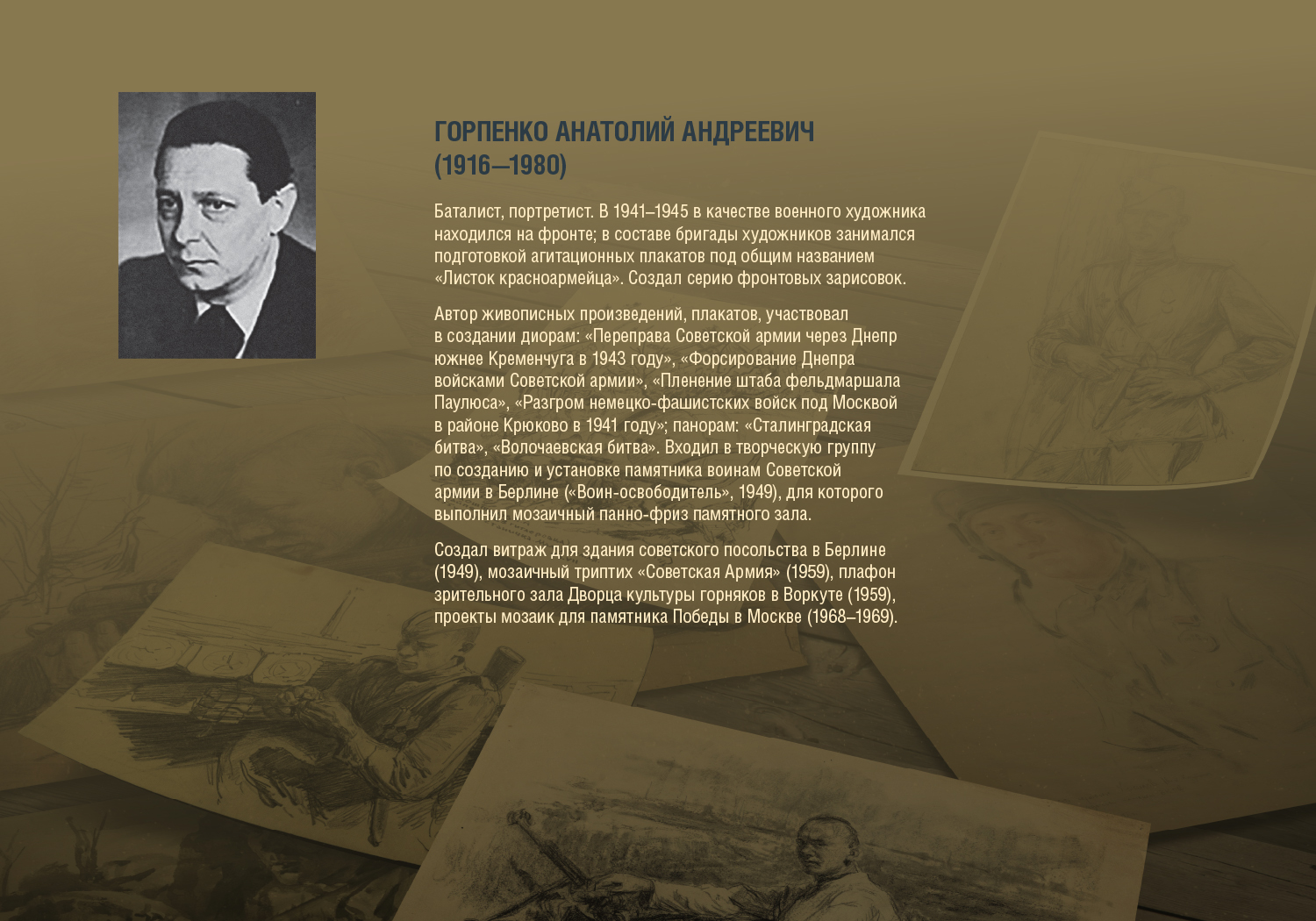 Графические работы выполнены мастерами Студии военных художников имени Митрофана Грекова на фронтах Великой Отечественной войны. На выставке посетители увидят портреты тех людей, чьи судьбы были установлены поисковиками. Гости музея узнают и о судьбах фронтовых художников. Среди них - выдающиеся советские графики Николай Жуков, Николай Пильщиков, Валериан Житенёв, Борис Преображенский, Анатолий Горпенко, прошедшие всю войну.